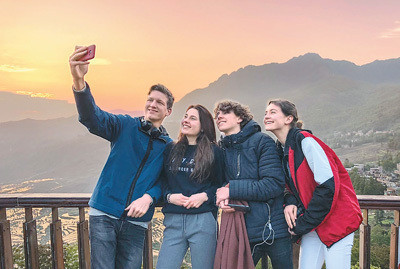 外国游客在多依树梯田观景台上合影留念。 元阳县委宣传部供图